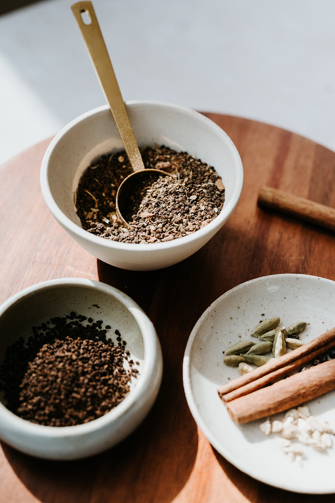 Seleccionamos el té y las especias cuidadosamente, las molemos y mezclamos a mano, con un ratio equilibrado que da lugar a nuestras mezclas de sabor tan característico.